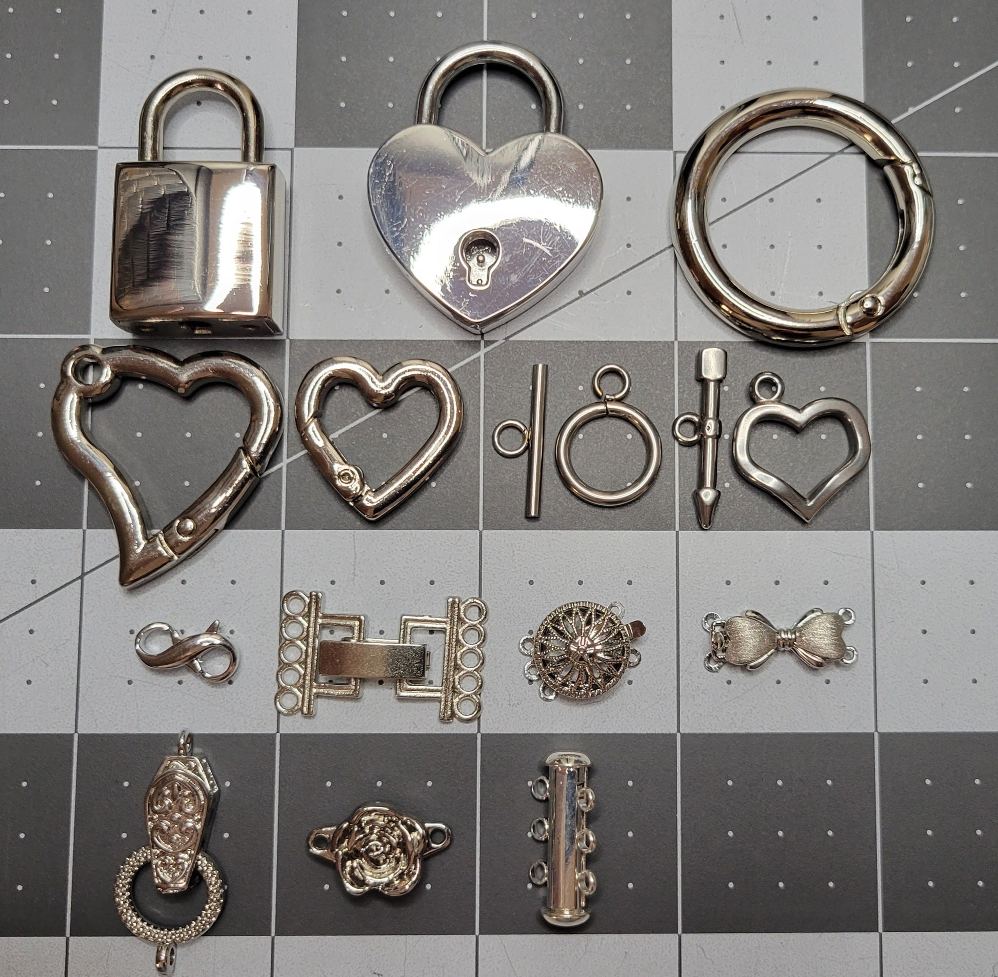 The rings are made of anodized coated aluminum making them stronger and more durable. The clasps and closures are plated alloys.