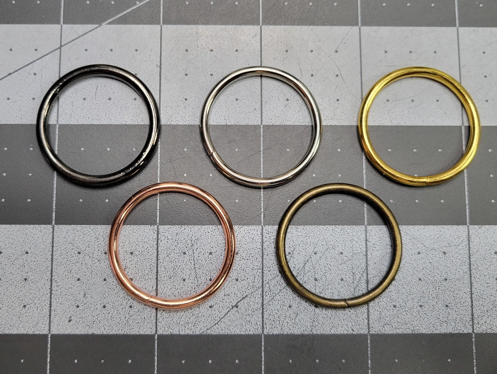 The rings are made of anodized coated aluminum making them stronger and more durable. The clasps and closures are plated alloys.